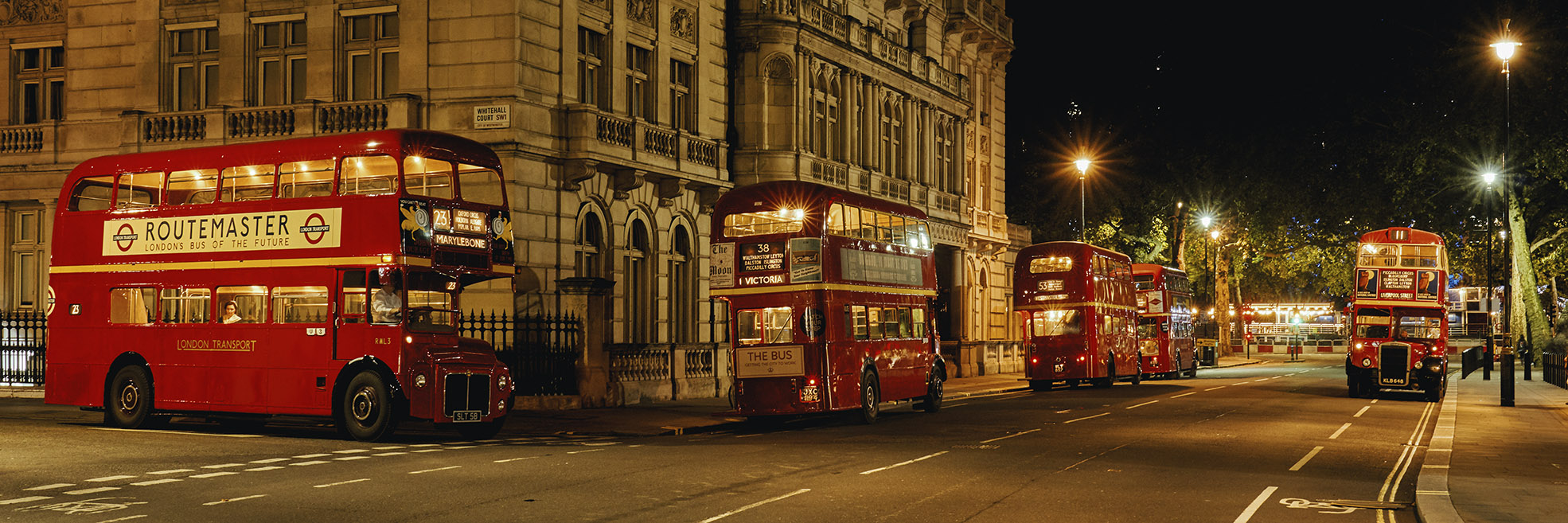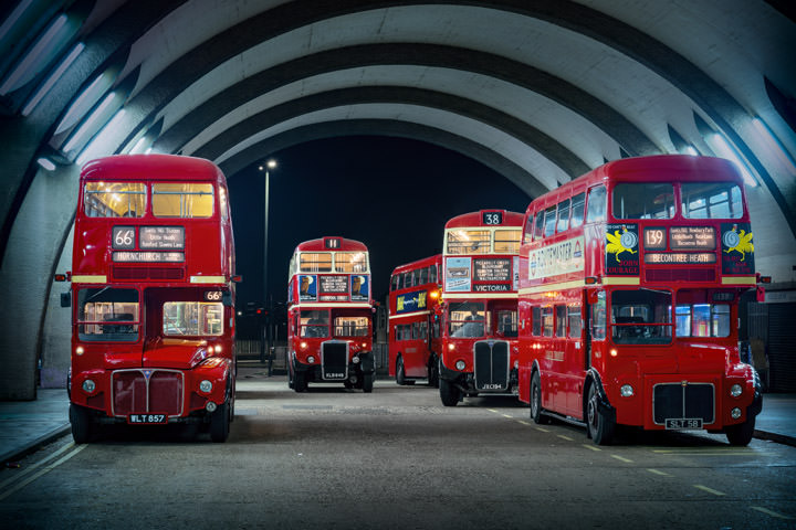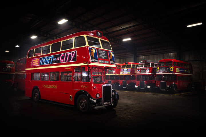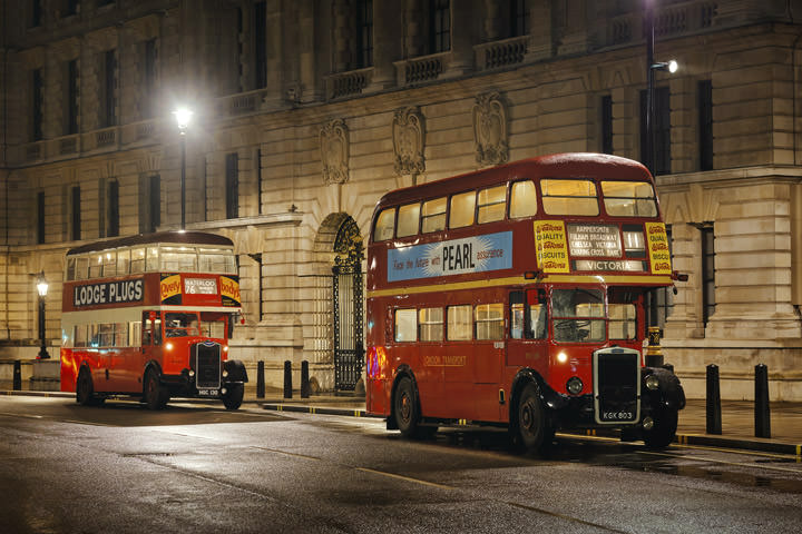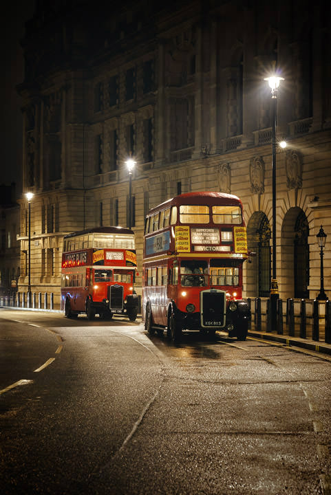 Vintage London Buses at Night