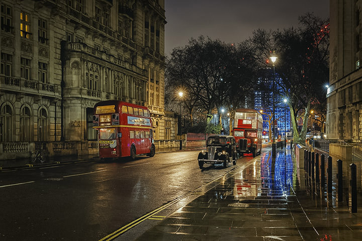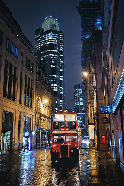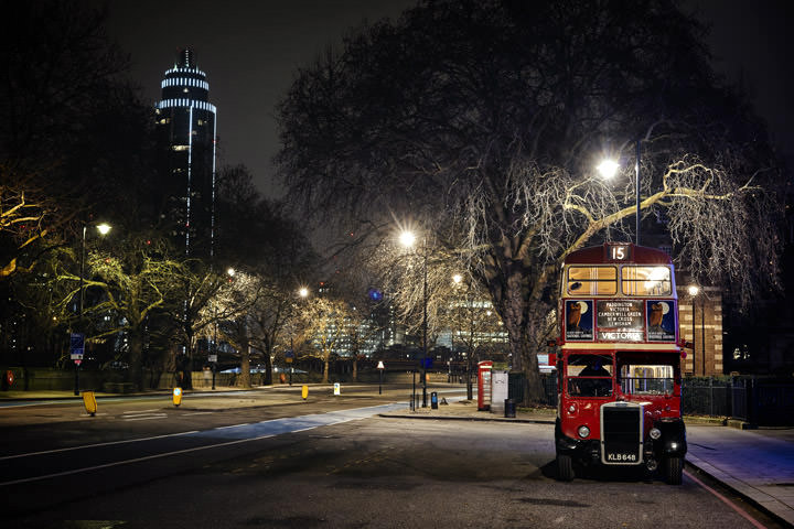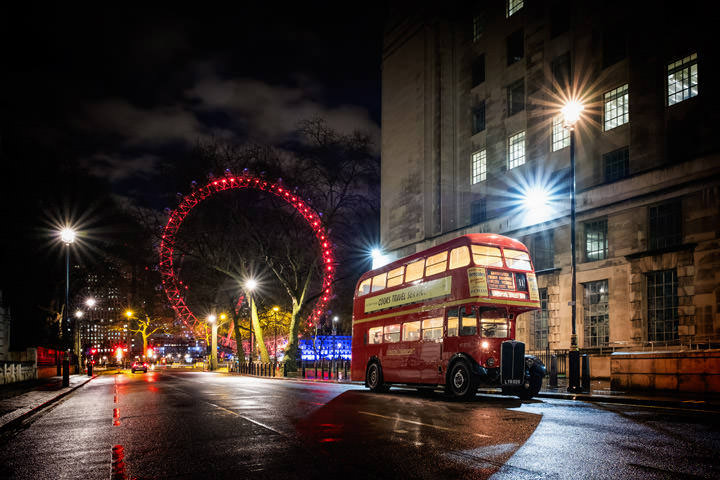 Its night time in the city and another bus shoot beckons. After boarding a vintage bus we head off to some of London’s most photogenic locations. Let's hope its raining. A wet night is a bonus, creating mood and ambience in cityscapes.