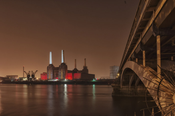The next shot is an unusual take on Battersea Power Station. I have photographed the building from the same spot many times. But I was only lucky enough to see it lit like this on one occasion.