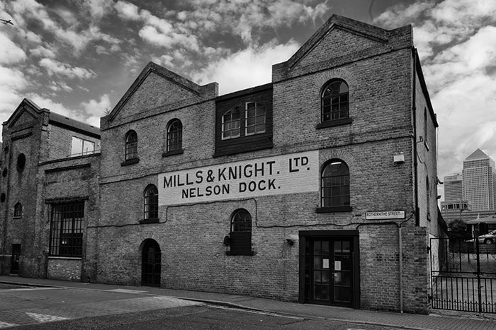 The first of my photographs of East London is of the shed of Mills and Knight who repaired ships in this location until 1968. Note the view of Canary Wharf to the right of the picture.