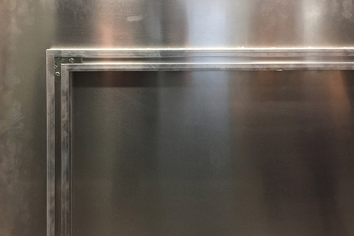 This rear view of the aluminium backing shows the sub frame that supports the picture and enables hanging over the baton.