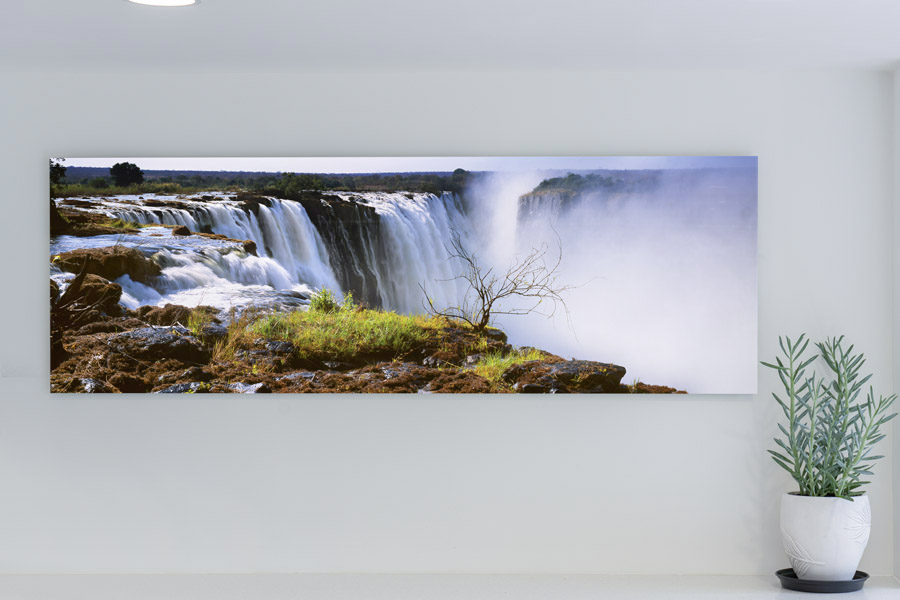 Inside the office the mood changes. Relax in a natural world of waterfalls and desert vistas.