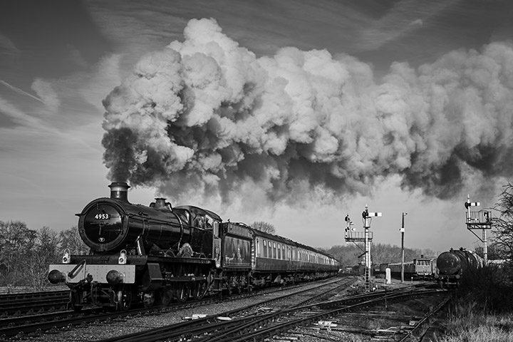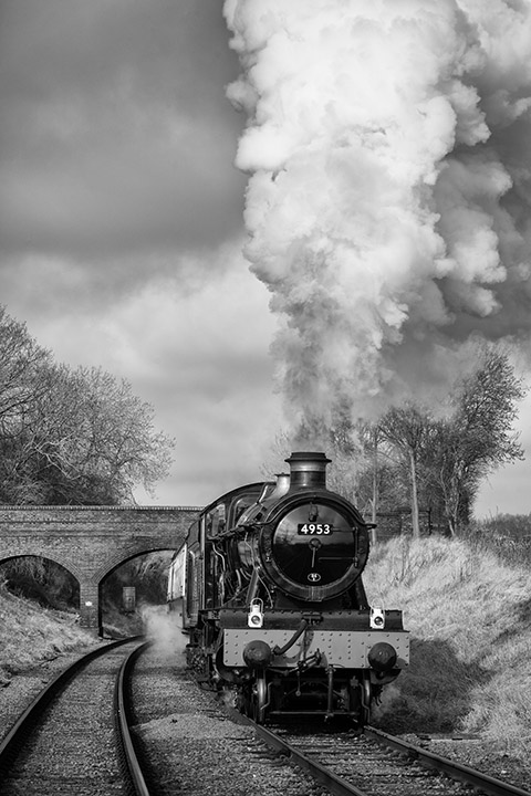 REF: WOF_W013_0803_1A photograph of loco 4993 Pitchford Hall coming through a railway bridge. This print is available as an art print, canvas or acrylic panel in various different sizes. To see more photographs of this location or theme, or for help or advice please call 01992 939344.