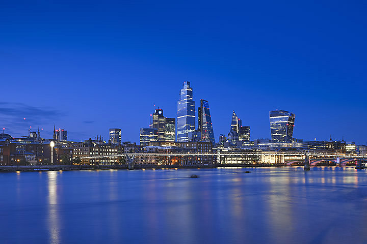 REF: WOF_X053_0002PA photograph of Blue London Cityscape 3. This print is available as an art print, canvas or acrylic panel in various different sizes. To see more photographs of this location or theme, or for help or advice please call 01992 535344.
