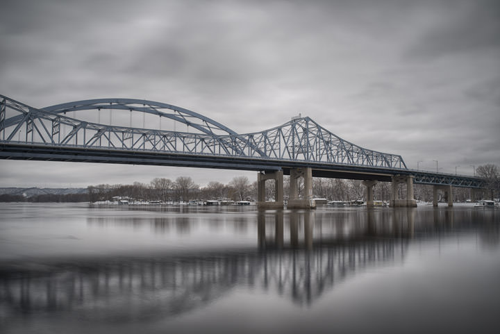 REF: WOF_P066_0095A photograph of the Bridge over the Mississippi River at La Crosse in Winsconsin, USA. This print is available as an art print, canvas or acrylic panel in various different sizes. To see more photographs of this location or theme, or for help or advice please call 01992 939344.