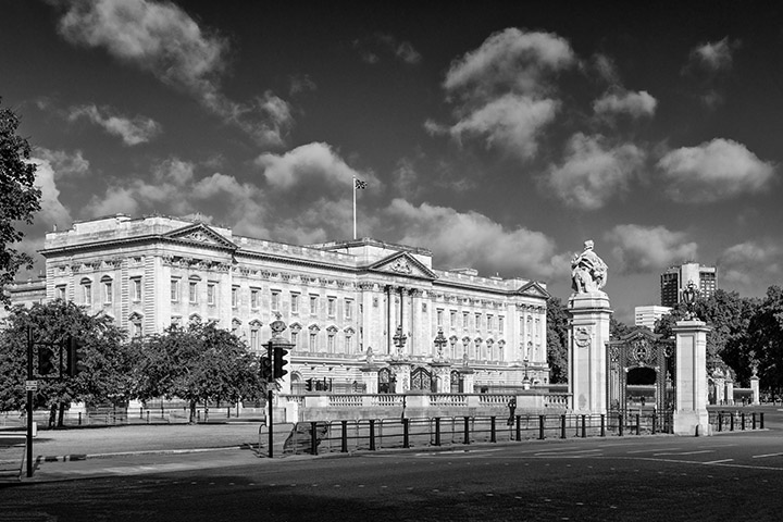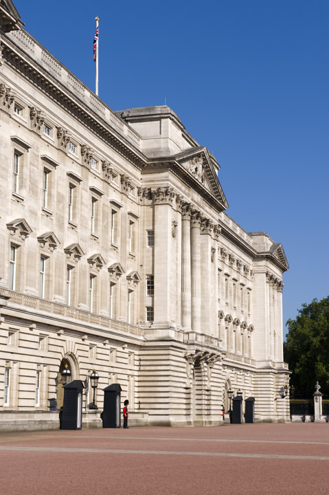 REF: WOF_H065_0182This photograph shows Buckingham Palace under a bright blue sky. This print is available as an art print, canvas or acrylic panel in various different sizes. To see more photographs of this location or theme, or for help or advice please call 01992 939344.