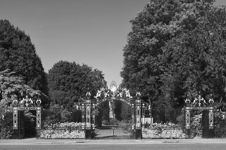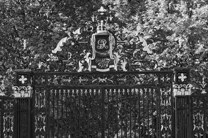 REF: WOF_J164_0119This black and white photograph shows Canada Gate at Green Park. This print is available as an art print, canvas or acrylic panel in various different sizes. To see more photographs of this location or theme, or for help or advice please call 01992 939344.