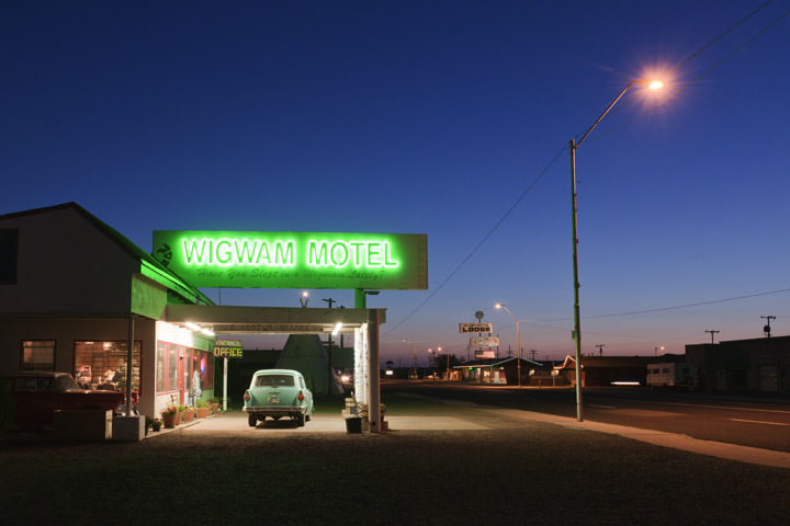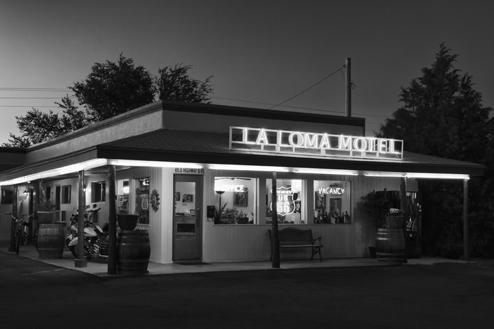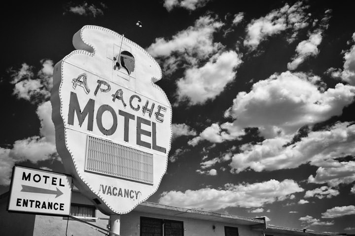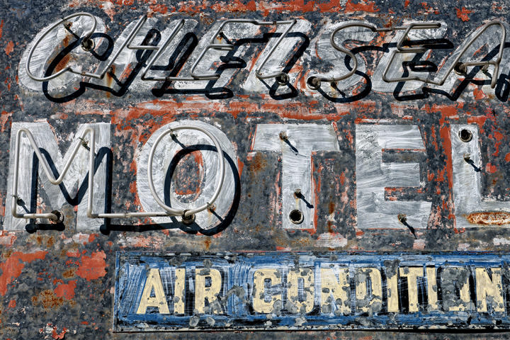REF: WOF_K083_0090This photograph is a study of detail of the Chelsea Motel sign on Route 66 in Oklahoma. This print is available as an art print, canvas or acrylic panel in various different sizes. To see more photographs of this location or theme, or for help or advice please call 01992 939344.