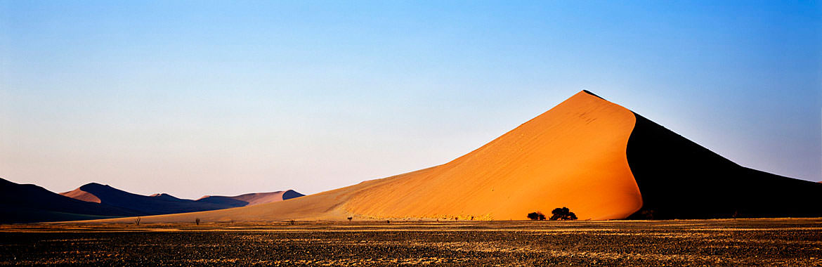 REF: WOF_G028_0063Highlight the immense scale of the desert with this atmospheric photograph showing a lone tree dwarfed by towering sand dunes. A powerful and dramatic piece for modern interiors.