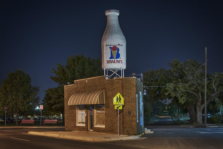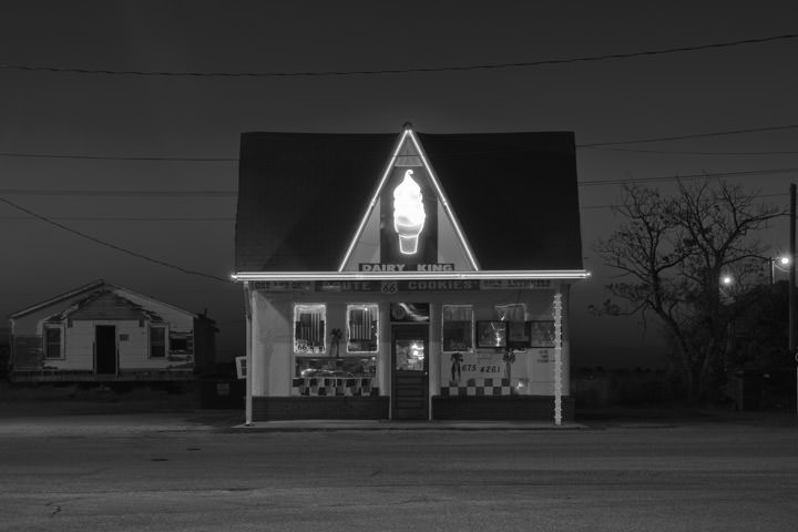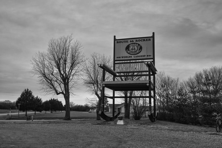REF: WOF_M021_0104This black and white photograph shows the Giant Rocking Chair on Route 66 in Fanning, Missouri. This print is available as an art print, canvas or acrylic panel in various different sizes. To see more photographs of this location or theme, or for help or advice please call 01992 939344.