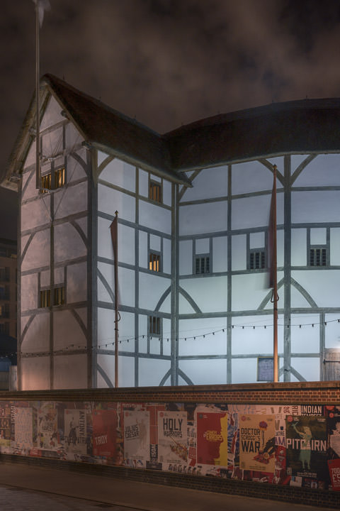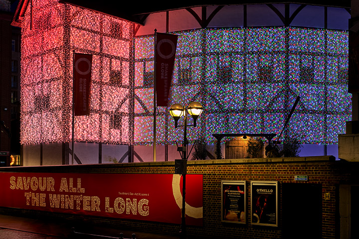 REF: WOF_Z185_0102A photograph of Globe Theatre at Christmas. This print is available as an art print, canvas or acrylic panel in various different sizes. To see more photographs of this location or theme, or for help or advice please call 01992 535344.