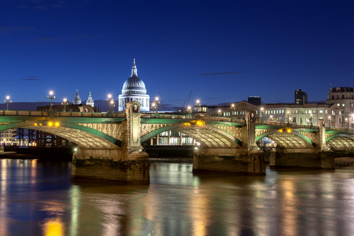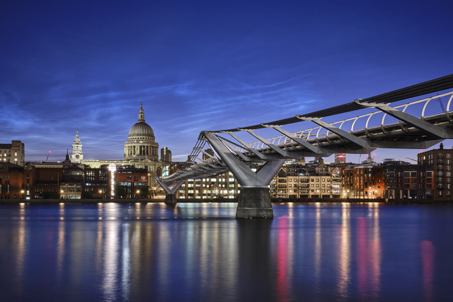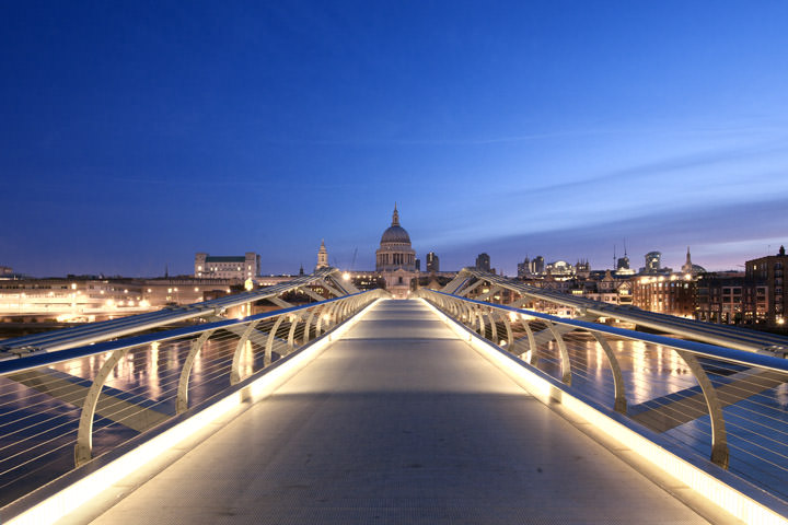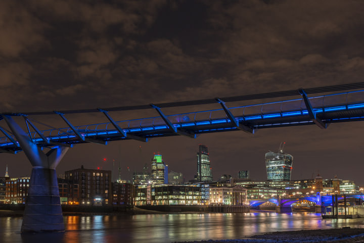 REF: WOF_L045_0022This photograph shows the Millennium Bridge leading towards St Pauls Cathedral at dusk. This print is available as an art print, canvas or acrylic panel in various different sizes. To see more photographs of this location or theme, or for help or advice please call 01992 939344.