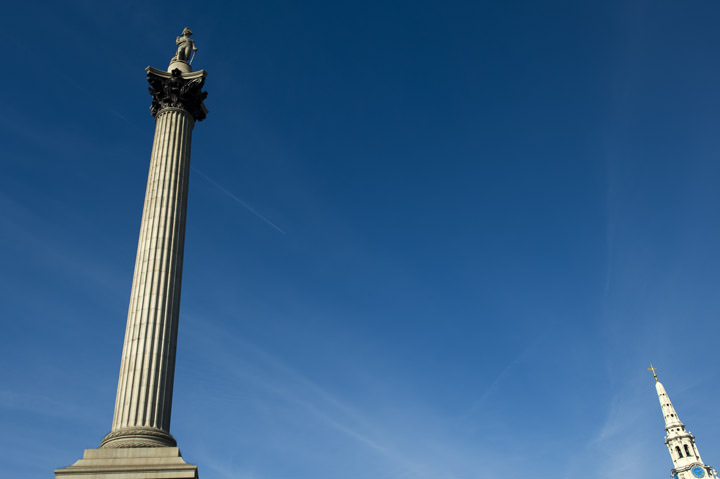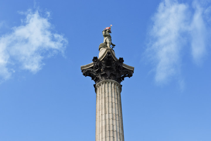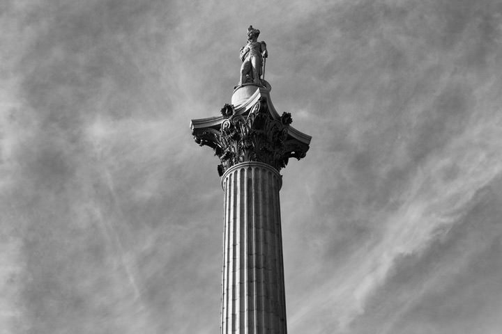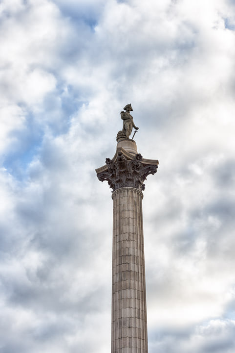 REF: WOF_M058_0007_1A black and white photograph of Nelsons Column on a cloudy day in London. This print is available as an art print, canvas or acrylic panel in various different sizes. To see more photographs of this location or theme, or for help or advice please call 01992 939344.