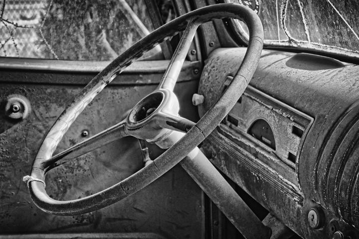 REF: WOF_K154_0064This photograph shows the interior of an old truck on Route 66. This print is available as an art print, canvas or acrylic panel in various different sizes. To see more photographs of this location or theme, or for help or advice please call 01992 939344.