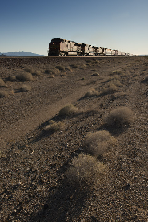 REF: WOF_L126_0228This photograph shows the Railroad alongside Route 66 in Goffs, California. This print is available as an art print, canvas or acrylic panel in various different sizes. To see more photographs of this location or theme, or for help or advice please call 01992 939344.