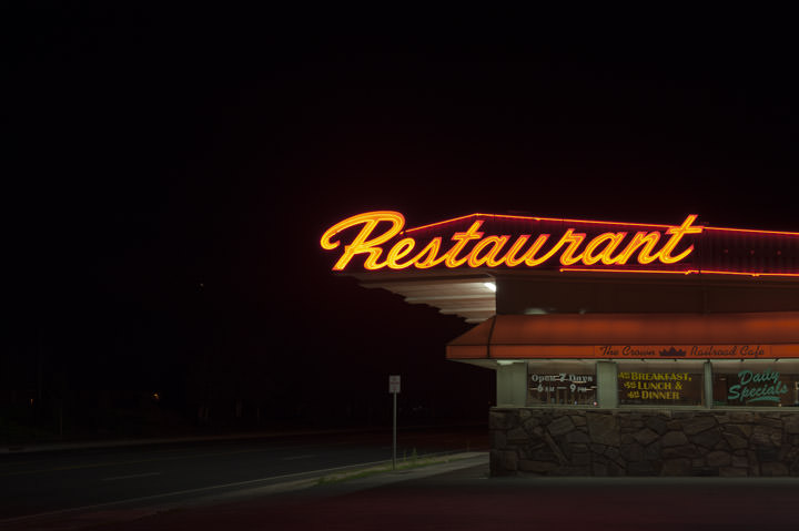 REF: WOF_J120_0004This photograph shows a restaurant on Route 66 in Flagstaff, Arizona. A modern sign but very much in the spirit of Route 66. This print is available as an art print, canvas or acrylic panel in various different sizes. To see more photographs of this location or theme, or for help or advice please call 01992 939344.