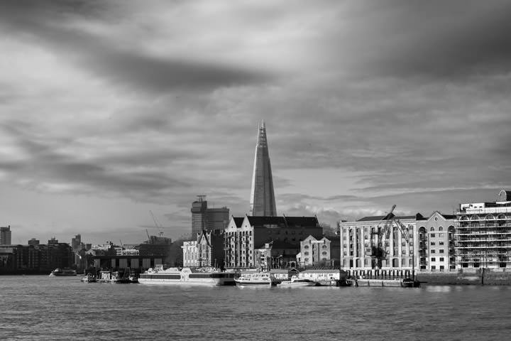 REF: WOF_N085_0281This photograph shows Shard viewed from Wapping at dusk. This print is available as an art print, canvas or acrylic panel in various different sizes. To see more photographs of this location or theme, or for help or advice please call 01992 939344.