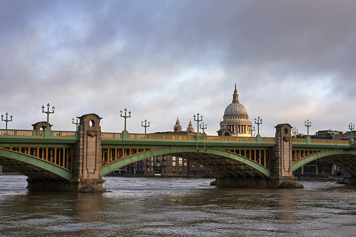 REF: WOF_W073_0220_1A photograph of Southwark Bridge Dawn 2. This print is available as an art print, canvas or acrylic panel in various different sizes. To see more photographs of this location or theme, or for help or advice please call 01992 939344.