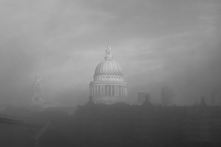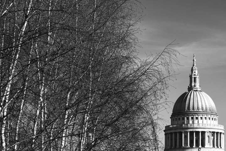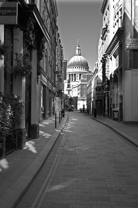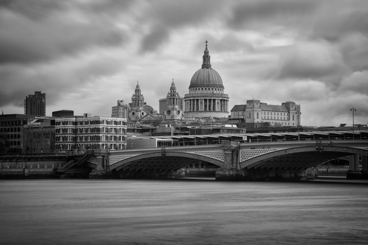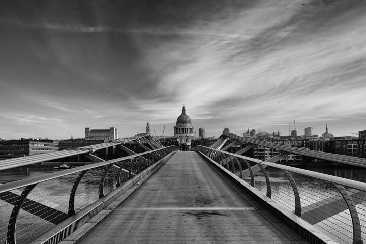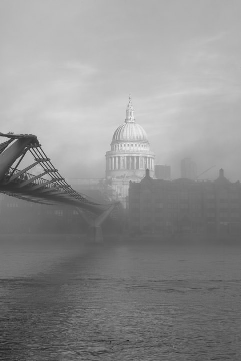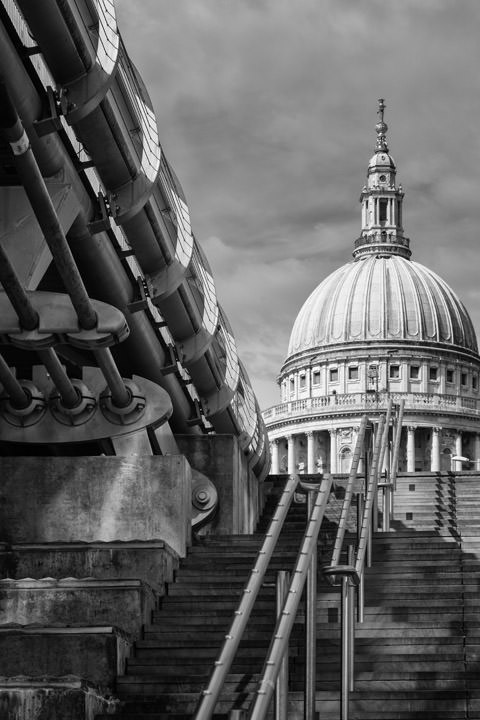 REF: WOF_L045_0173This black and white photograph shows the view from the Millennium Bridge to St Pauls Cathedral. This print is available as an art print, canvas or acrylic panel in various different sizes. To see more photographs of this location or theme, or for help or advice please call 01992 939344.