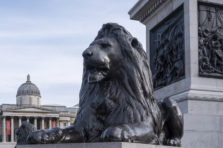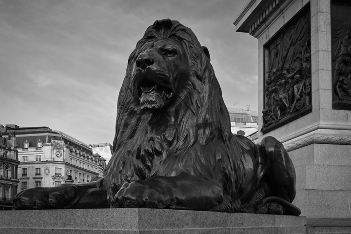 REF: WOF_X043_0169A photograph of Trafalgar Square Lion 3. This print is available as an art print, canvas or acrylic panel in various different sizes. To see more photographs of this location or theme, or for help or advice please call 01992 939344.