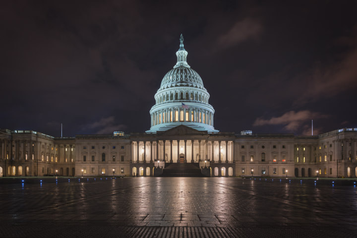 REF: WOF_U115_0046A photograph of the United States Capitol building in Washington DC views from the street. This print is available as an art print, canvas or acrylic panel in various different sizes. To see more photographs of this location or theme, or for help or advice please call 01992 939344.
