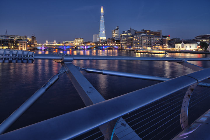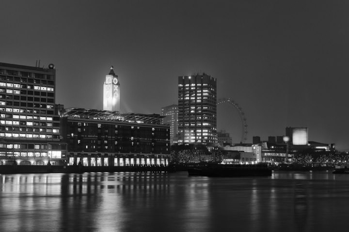 REF: WOF_K112_0068This photograph shows Tower Bridge, London Bridge Hospital and the River Thames at night. This print is available as an art print, canvas or acrylic panel in various different sizes. To see more photographs of this location or theme, or for help or advice please call 01992 939344.