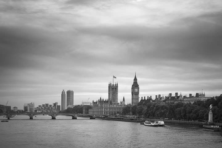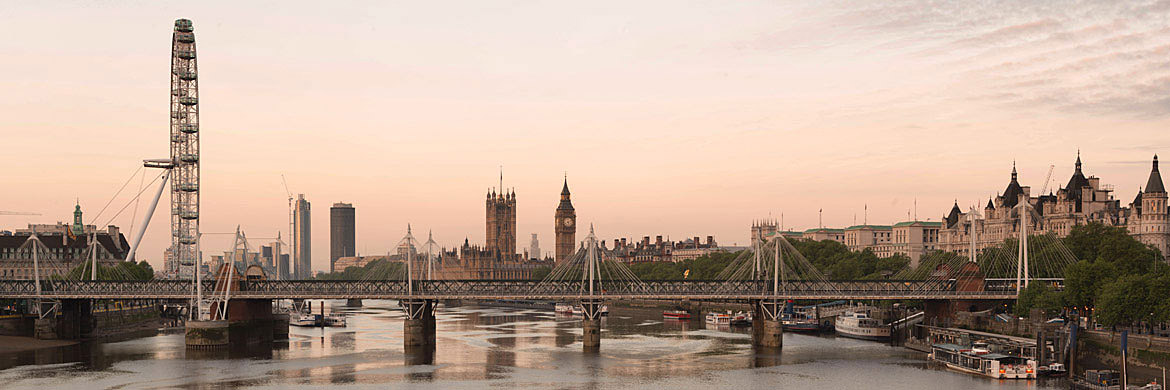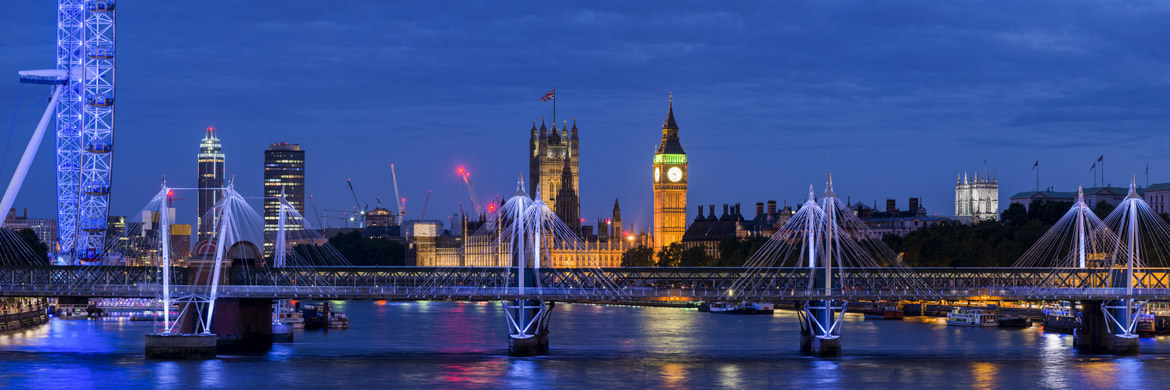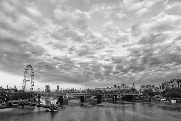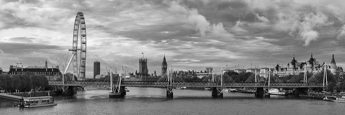 REF: WOF_N137_0013This black and white panoramic photograph shows the Westminster Skyline featuring the London Eye and the Houses of Parliament against the backdrop of a beautiful winter skyline. This print is available as an art print, canvas or acrylic panel in various different sizes. To see more photographs of this location or theme, or for help or advice please call 01992 939344.